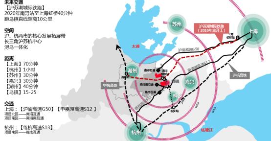 高速枢纽:出行十分便利。周边城市均可通过高速快速到达。沪渝高速到上海虹桥只需70分钟,到杭州1个小时,到苏州也只需30分钟,40分钟可直达湖州,25分钟可到达乌镇,于几大城市的十字交叉中心,所以从南浔到这几个城市的距离都非常近